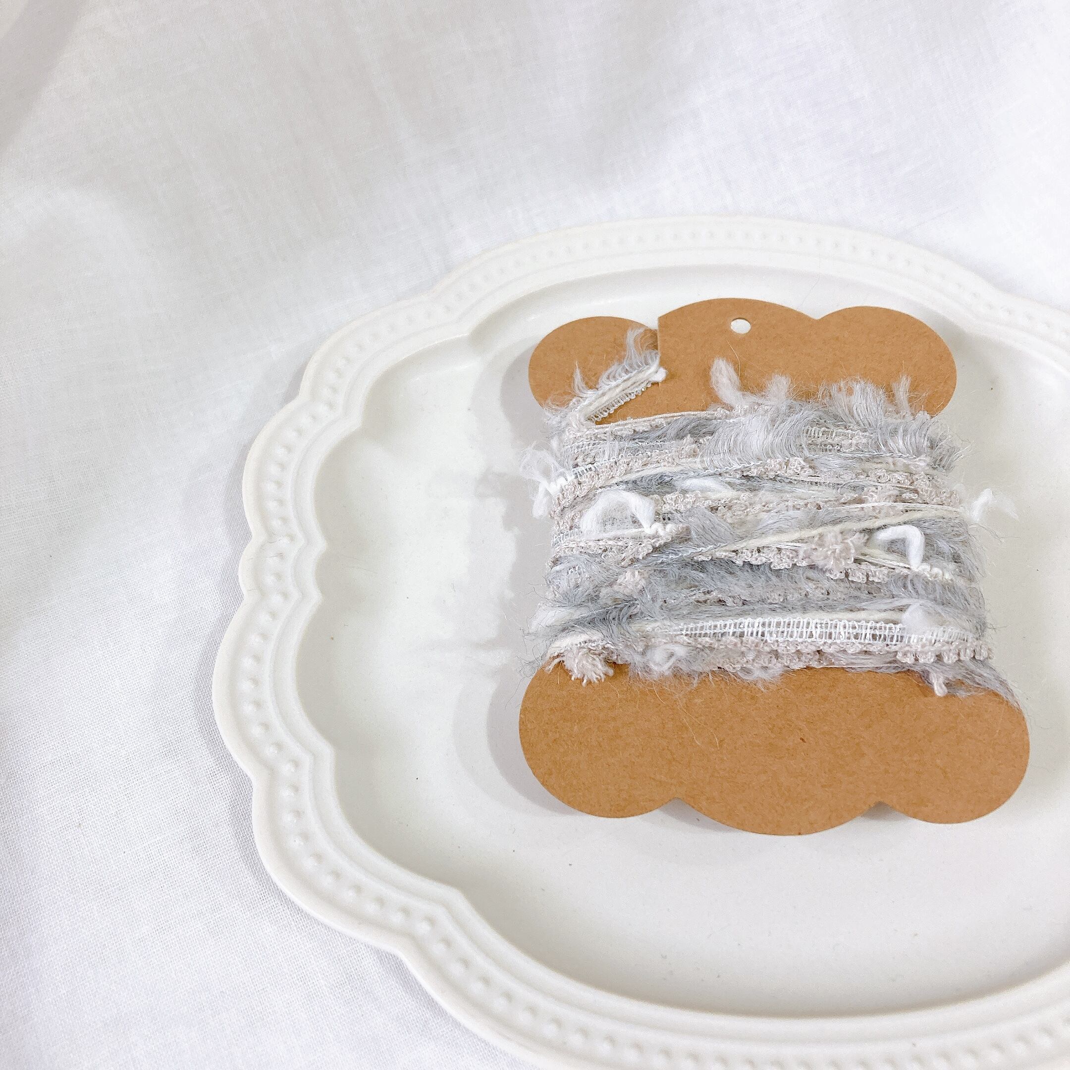 糸作家様からお譲り頂いた糸や糸屋さん等で購入した糸やリボン等を複数組み合わせて一つにしています。全て+Farbeの手染め糸とは限りませんのでご了承ください。